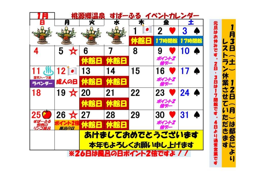 1月2日、3日は17時閉館とさせていただきます。